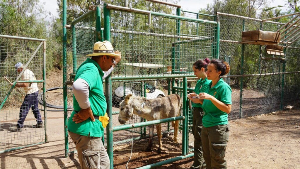 La intervención implicó un esfuerzo coordinado y minucioso de más de dos horas. La veterinaria encargada realizó una inspección de campo, revelando la presencia del burro majorero herido, que convivía junto con tres machos más y una hembra. Tras comprobar su estado, se procedió a la inmovilización y traslado del animal a Oasis Wildlife, para recibir tratamiento médico veterinario especializado.