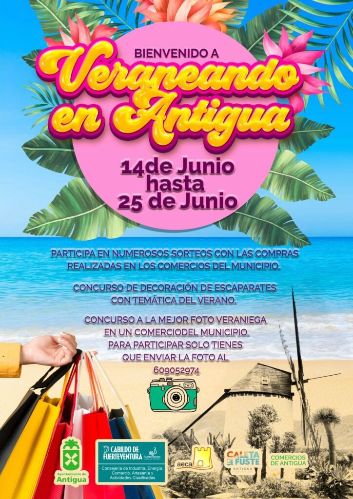La Campaña Veraneando en Antigua, organizada por la concejalía de Comercio y subvencionada por el Cabildo de Fuerteventura, comienza el próximo lunes 14 de junio, ofreciendo a los clientes de comercios en el municipio, la participación por sus compras en numerosos sorteos. Conocerás los ganadores el sábado 26 en ‘El Programa de Montesdeoca’ de Radio Insular.