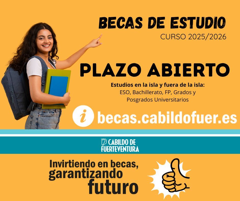 El Cabildo de Fuerteventura, a través de la Consejería de Educación, ha abierto este lunes la convocatoria de becas al estudio dentro y fuera de la isla, becas de movilidad y becas de alojamiento en residencias escolares públicas para el curso 2025/2026.