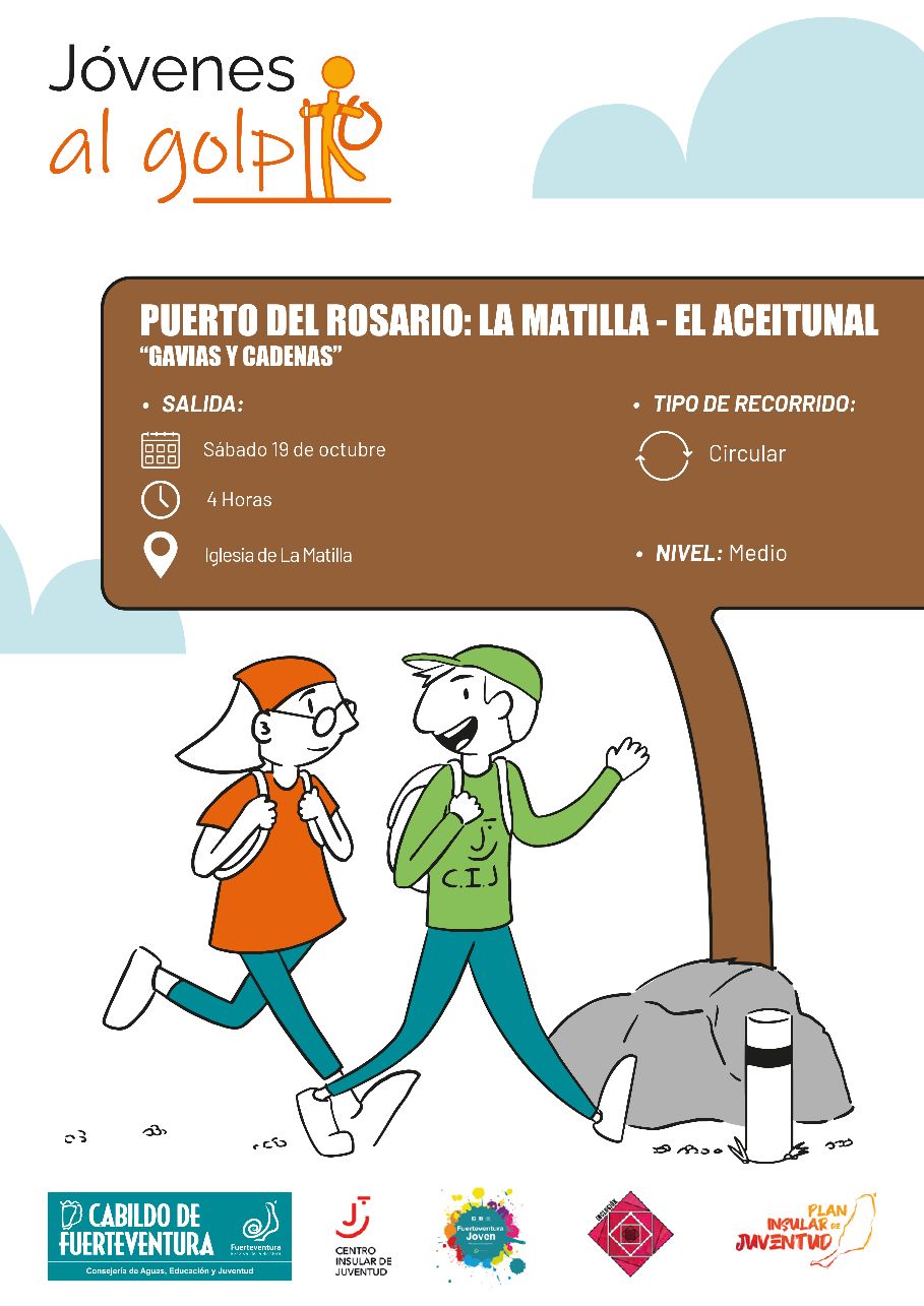 La Consejería de Juventud del Cabildo de Fuerteventura, dirigida por Adargoma Hernández, ha abierto el plazo de inscripción para la tercera ruta del programa formativo Jóvenes al Golpito. Esta nueva excursión, Gavias y cadenas, llevará a los jóvenes a explorar la zona de La Matilla-El Aceitunal, en el municipio de Puerto del Rosario, mañana sábado, 19 de octubre.