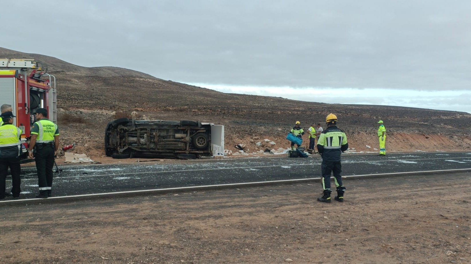 Accidente con vuelco en la FV-104 deja un herido de pronóstico reservado y otro leve