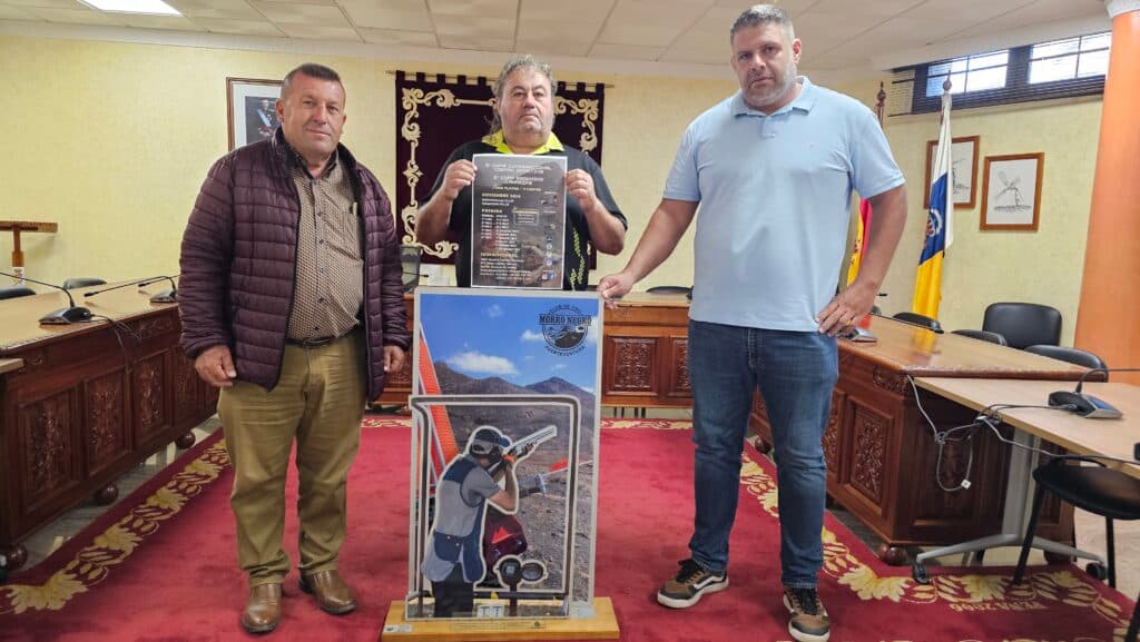 El alcalde, Matías Peña, el concejal de Deportes, Samuel Torres y el representante del Club de Tiro Morro Negro, Cesar Alonso Junquera, han presentado en el Ayuntamiento de Antigua, la 3ª Copa Internacional Compak Sporting y la 2ª Copa Browning Canarias que acogerá los mejores tiradores regionales y nacionales, que competirán del 21 al 24 de noviembre.