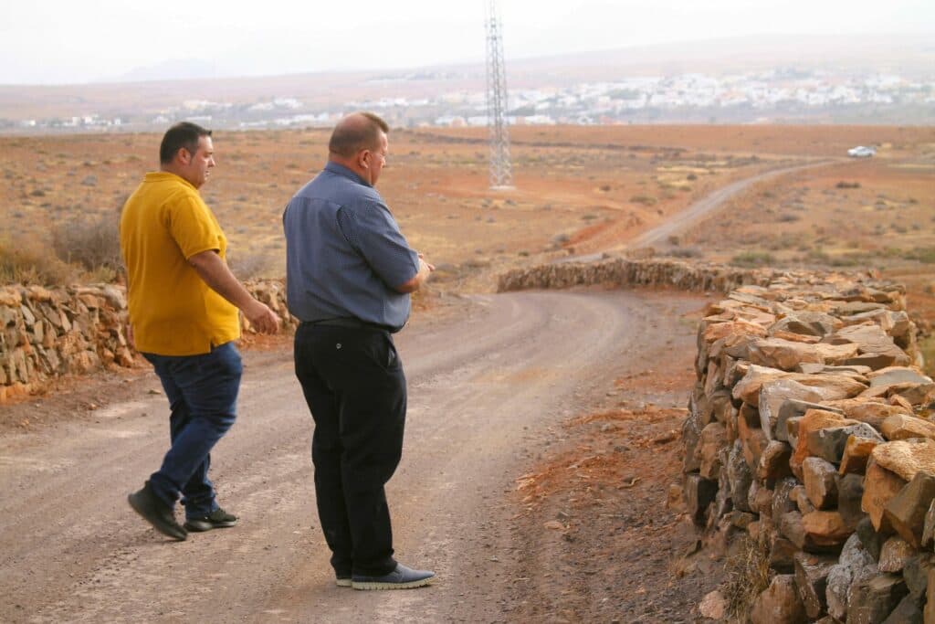 El alcalde, Matías Peña y el concejal de área, Fernando Estupiñán han visitado este martes cuatro de julio, a primera hora de la mañana, la parte alta del camino que se dirige a Tacha Blanca desde Antigua, comprobando la progresión en la reconstrucción del muro de piedra colindante.