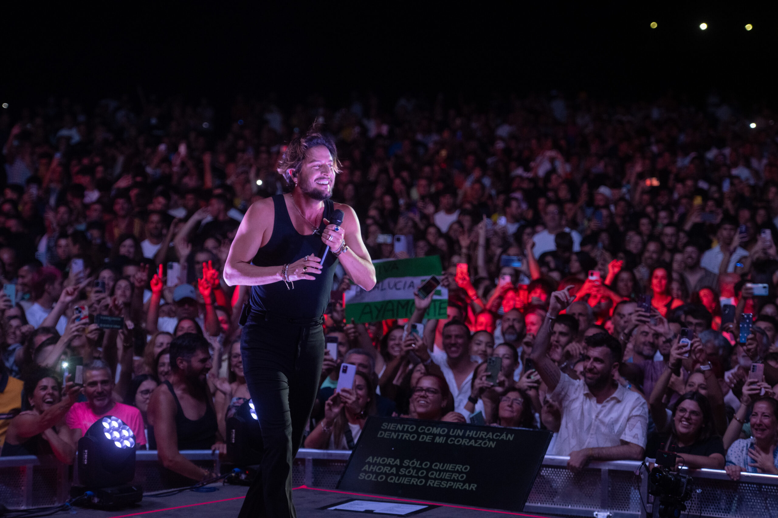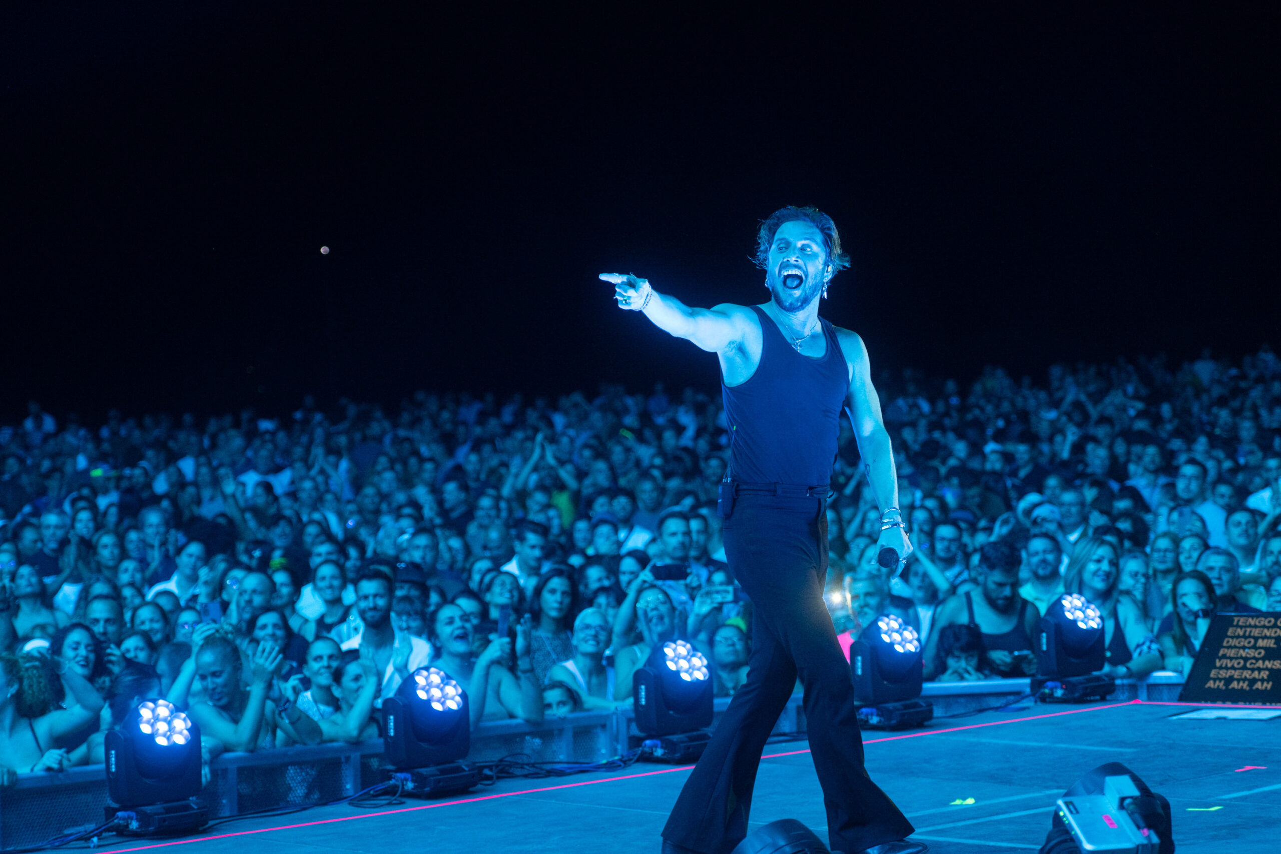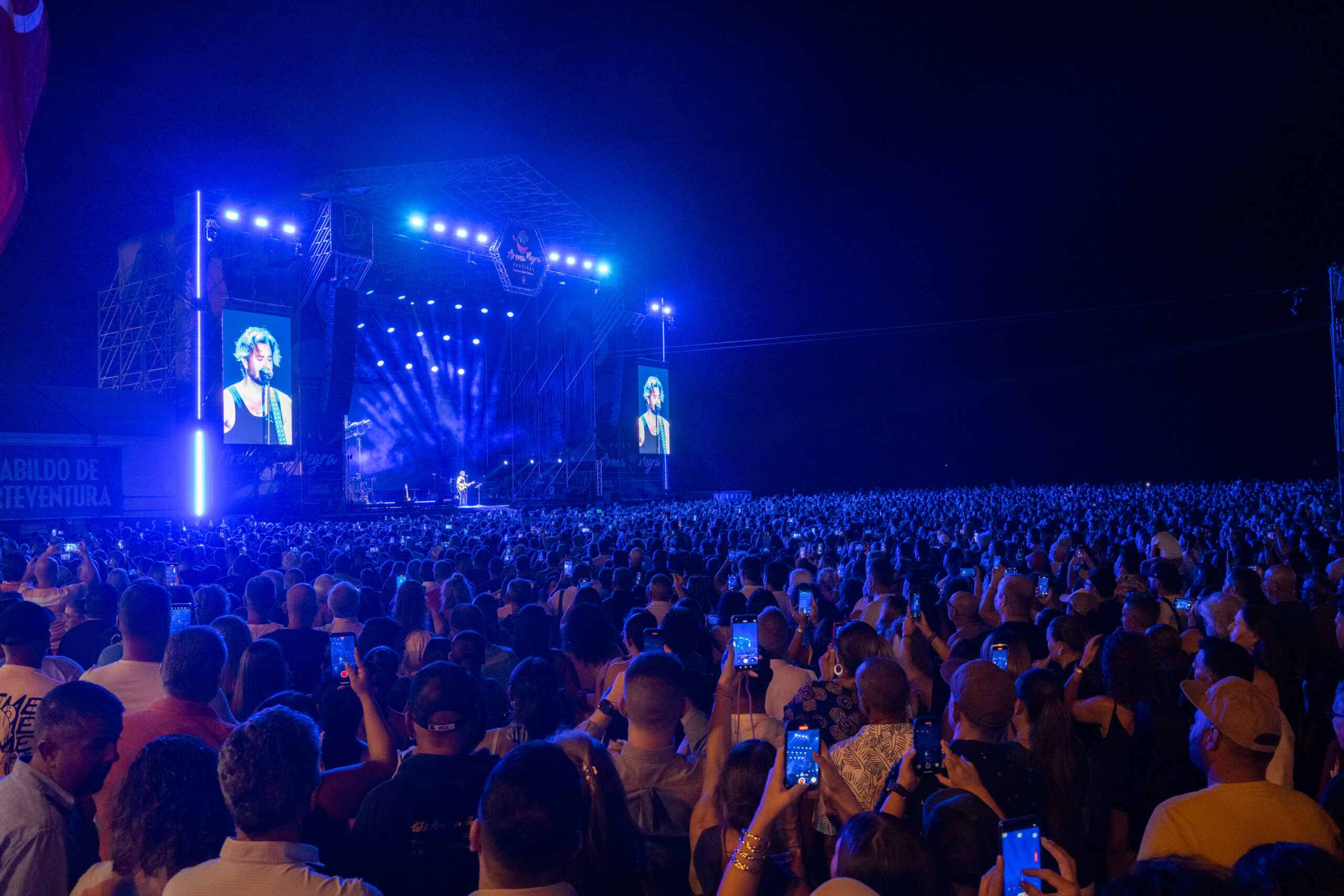 El momento cumbre de la noche llegó con la presentación de Manuel Carrasco, quien fue el principal atractivo de la jornada. El artista andaluz, muy entregado con la audiencia, dedicó palabras de aprecio a la organización y a los majoreros, con frases como: “No sabéis la suerte que tenéis de vivir aquí”. También aprovechó para enviar un mensaje de concienciación, instando a la audiencia a cuidar el entorno natural: “Cuiden mucho vuestro entorno, es único”. Carrasco brindó un espectáculo visual impresionante, en el que miles de personas no dejaron de cantar y bailar. Su cercanía y su entrega lograron una conexión especial con el público, convirtiendo su concierto en el momento más concurrido y vibrante de todo el festival. Las visuales y efectos de luces acompañaron cada canción, creando una atmósfera inolvidable en la playa de Gran Tarajal.
