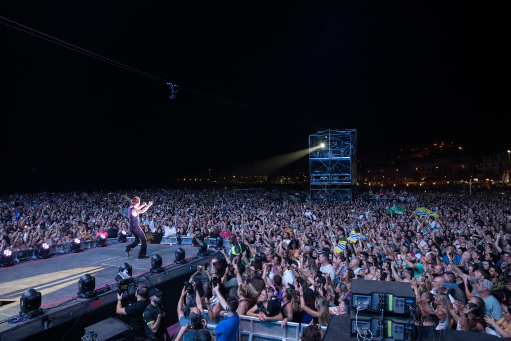 La noche en el escenario principal comenzó a las 20:00, con la tan esperada presentación de Marta Santos, quien arrancó los aplausos del público al interpretar su éxito Algo Sencillito, tema que resonó en la playa y atrajo a una gran cantidad de asistentes al arenal. Su actuación marcó el inicio de una velada memorable, que se preparaba para recibir al momento más esperado del festival.