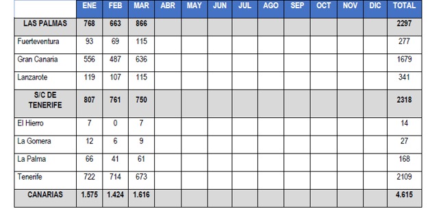 Los dispositivos para mujeres agredidas en las islas (DEMA) fueron activados en 526 ocasiones, y 102 mujeres junto a sus 51 hijos fueron acogidas de emergencia para protegerse de sus maltratadores. En paralelo, se movilizaron 2.609 recursos policiales y 221 sanitarios para atender estas situaciones.
