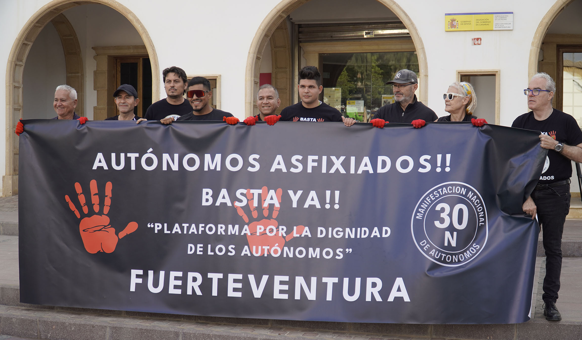 Unos 250 autónomos se concentraron esta mañana frente a la Delegación del Gobierno de Canarias en Fuerteventura, en una protesta que forma parte de la movilización nacional del 30N, convocada simultáneamente en numerosas ciudades españolas. La manifestación, impulsada en la isla por la Asociación de Autónomos de Fuerteventura y Canarias, reunió a profesionales de sectores tan diversos como la hostelería, el comercio, el transporte, la construcción, los servicios, el arte y el pequeño emprendimiento.