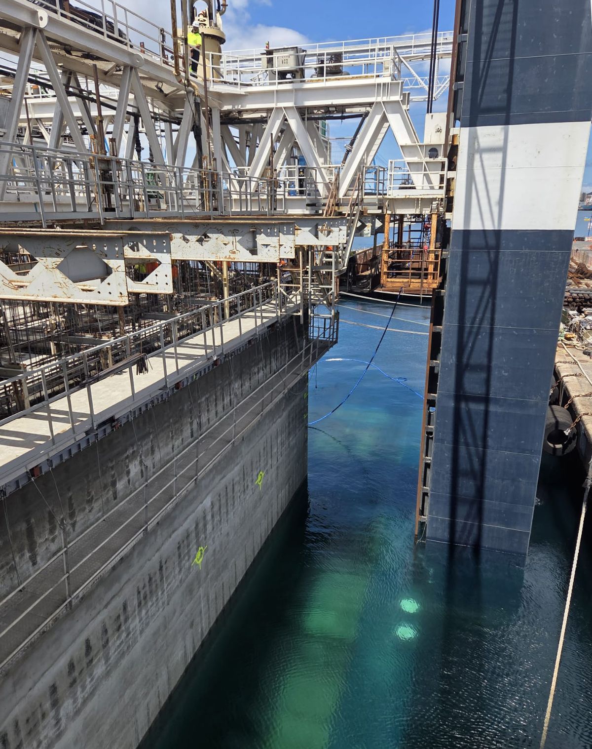 Durante este fin de semana se procederá a la botadura y atraque del primer cajón en el Puerto de Las Palmas, donde permanecerá temporalmente hasta su traslado definitivo al Puerto de Puerto del Rosario para su fondeo. Los trabajos de construcción se desarrollan sin descanso durante las 24 horas del día, garantizando así el cumplimiento de los plazos establecidos para esta obra estratégica.