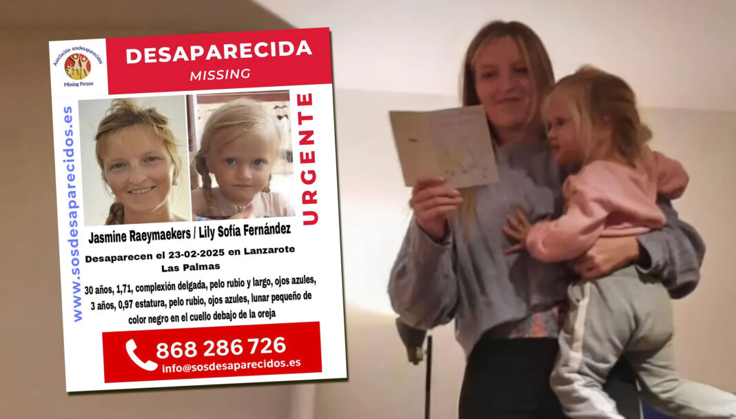 La asociación SOS Desaparecidos ha lanzado una alerta urgente para localizar a Jasmine Raeymaekers, de 30 años, y su hija Lily Sofía Fernández, de apenas tres años, desaparecidas desde el pasado 23 de febrero en la isla de Lanzarote. Según ha confirmado la organización, se trata de un caso de “alta vulnerabilidad” en el que se baraja la posibilidad de una sustracción parental, motivo por el que se ha intensificado la búsqueda.