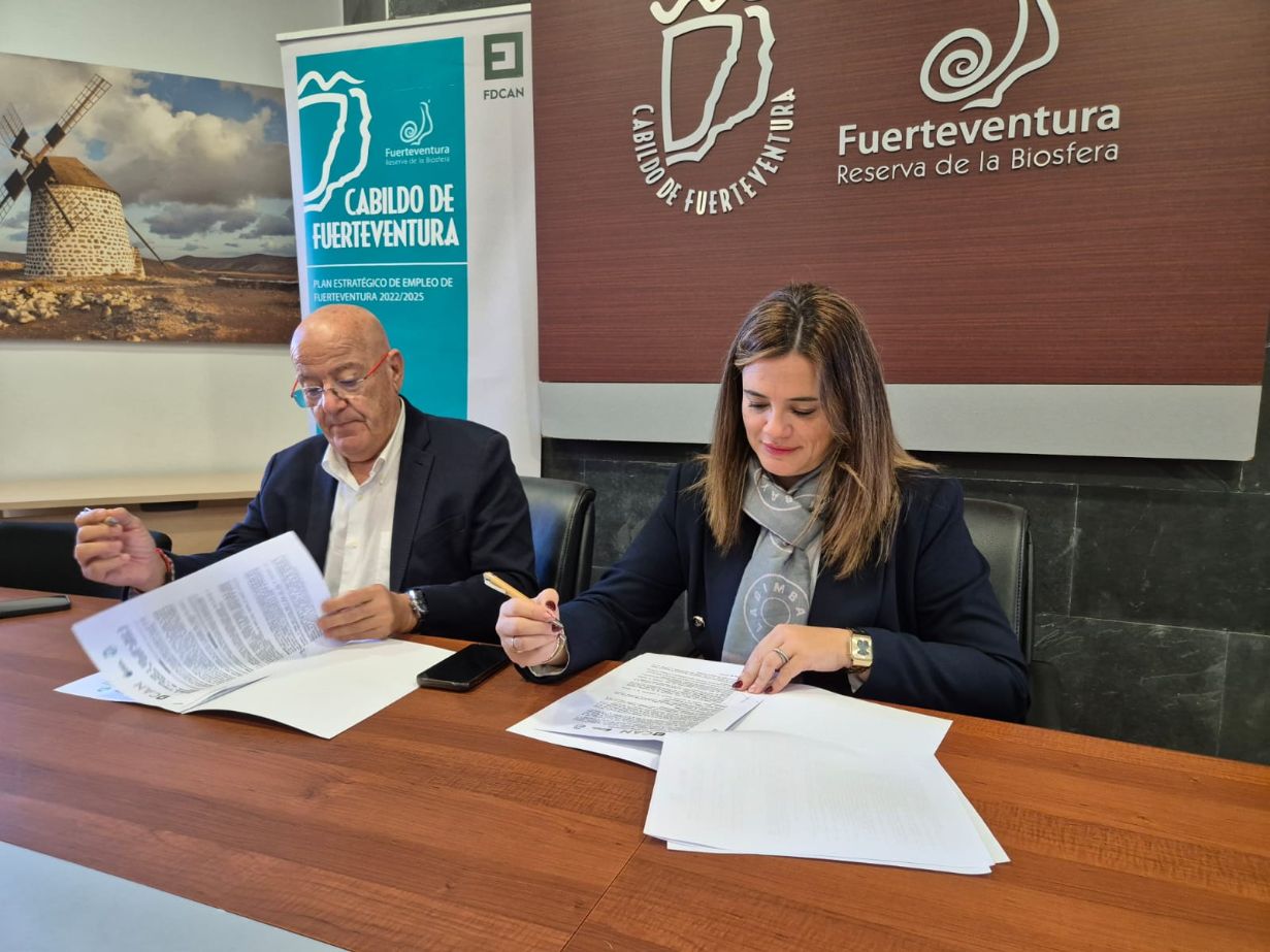 El Cabildo de Fuerteventura y Asofuer emprenden un proyecto para fortalecer el tejido empresarial majorero. Bajo el título ‘Fuerteventura impulsa’, esta iniciativa se desarrolla gracias al convenio de colaboración suscrito entre el área insular de Promoción Económica y la Asociación de Empresarios Turísticos de Fuerteventura.