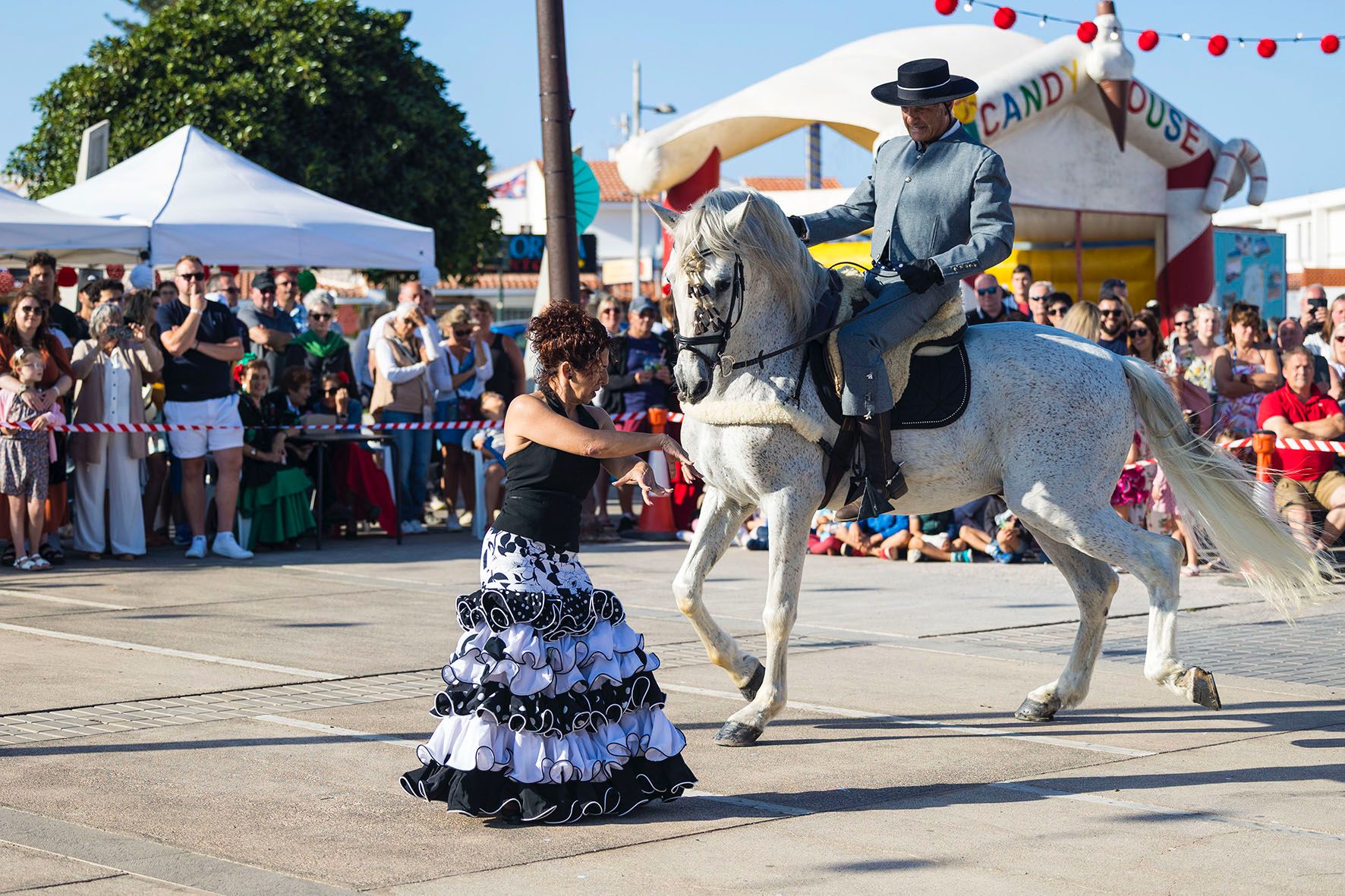 La Plaza de El Castillo volvió a ser escenario del magnífico espectáculo protagonista del mes de abril, el Baile Ecuestre y Flamenco que ofrecieron seis cuadras de caballos, Crines del Viento, El Aceitunal, El Albercón, Victoria, Calesa de ponis y Márquez Aguiar, el grupo de cante y baile Con arte y las academias de baile de Ana Villacampa y Cinco Sentidos.