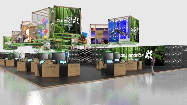Canarias acude a la feria con el mismo pabellón de 1.425 metros cuadrados que presentó en la feria de Alemania, que impactó por su diseño y por mostrar un turismo «más sostenible, verde, ecológico, digital y más social», ha indicado Catilla, a lo que Lorenzo ha añadido que se persiste en reducir la huella de carbono que provoca la presencia de las islas en Fitur.