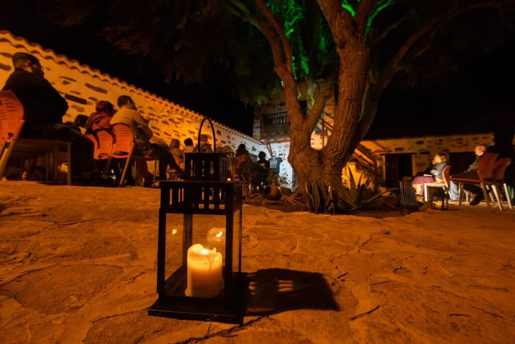 - Candil de Cuentos en su segunda edición completa el aforo en cada sesión que se celebra en el patio majorero de la Biblioteca Municipal de Antigua, cada viernes de este mes de octubre, con un público expectante iluminado con la luz de las velas en los candiles.