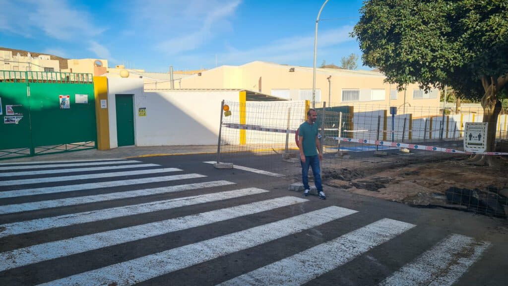 Una acción posible para mejorar la seguridad de la zona, es la ampliación de las aceras y si fuera necesario colocar vallas de protección entre los pasos de peatones y la entrada al colegio, de esta manera se consigue una mayor seguridad sin necesidad de pavimentar la mediana, apunta Yeray Hernández concejal de AM-CC.
