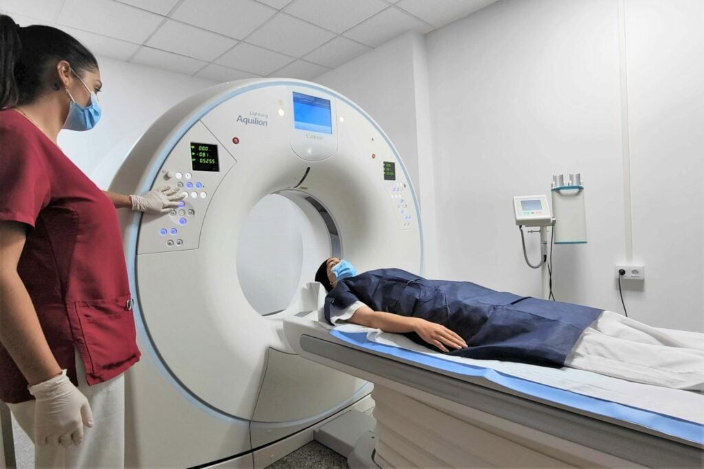 - El nuevo equipamiento de tomografía computarizada del CEM es un modelo de última generación de la marca Canon, capaz de reducir en más en más de un 90% las dosis de radiación que recibe el paciente, además de realizar los diagnósticos mucho más precisos gracias a la inteligencia artificial