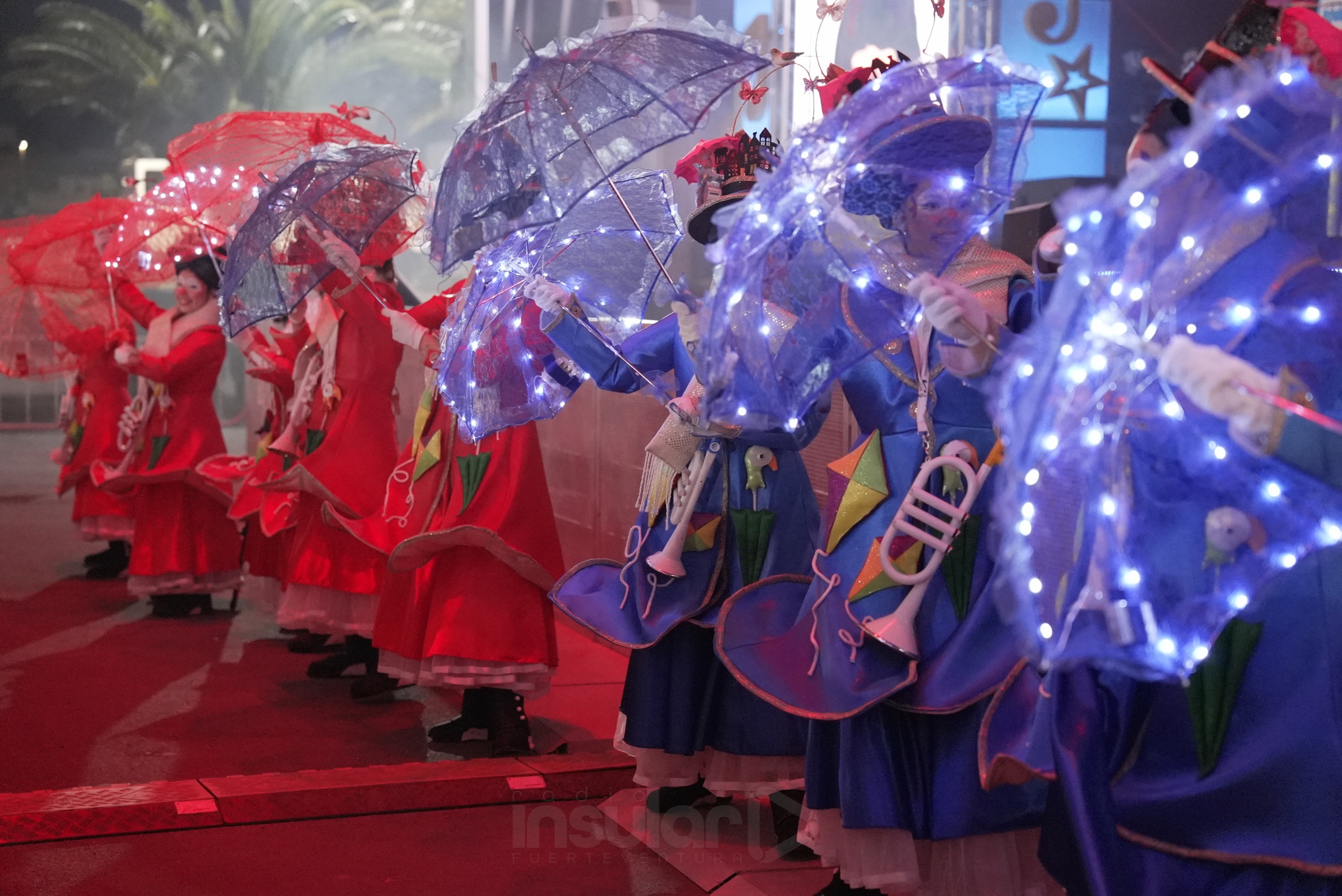 La murga infantil Chiki-Rompís fue la encargada de abrir el encuentro insular con una actuación inspirada en el universo de Mary Poppins, una alegoría cargada de color, fantasía y números musicales, pero también de crítica social. Con su tradicional puesta en escena y un escenario lleno de paraguas y sonrisas, la agrupación combinó la estética de los musicales con un mensaje directo sobre varias de las preocupaciones cotidianas de la isla.