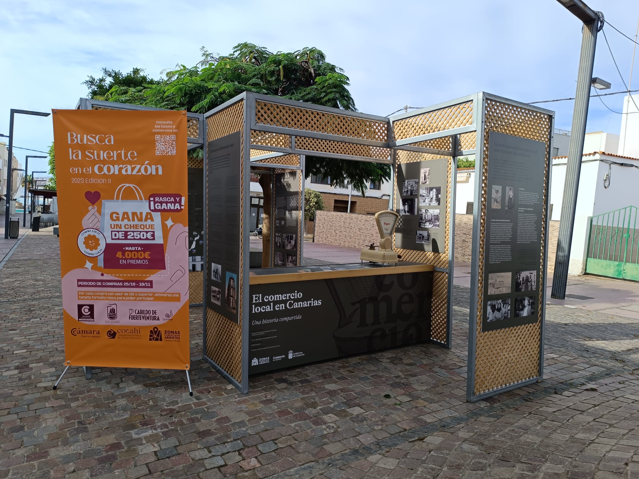 Con motivo de la puesta en marcha de esta campaña comercial, el Gobierno de Canarias ha instalado una estructura en la calle Primero de Mayo en la que hace un repaso histórico por el comercio local en Canarias. Una iniciativa que hace su penúltima parada en Puerto del Rosario antes de instalarse en la isla de Lanzarote.