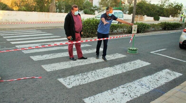 El alcalde, Matías Peña y el concejal de Accesibilidad, Jesús M. Montañez, han visitado el comienzo de las obras de pavimentación para adaptar a personas con movilidad reducida todos los pasos de peatones que afectan a dos calles del entorno del CEO de Antigua, la calle Alcalde Montesdeoca Cabrera, calle del Deporte y la avenida de la Constitución del casco urbano de Antigua.