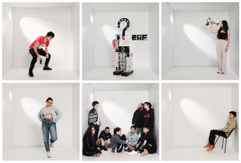 El alumnado y los docentes protagonizan la campaña titulada Aquí En-Cajas, ilustrando con una serie fotográfica, un cartel y dos spots audiovisuales la identidad misma de la escuela. «Mostramos a los alumnos y profesores posando en las cajas, porque su propia imagen nos habla de lo que significa este centro, un espacio de integración, aprendizaje, desarrollo personal, y libertad creativa», señaló el director de la EAF, Guanarteme Cruz.