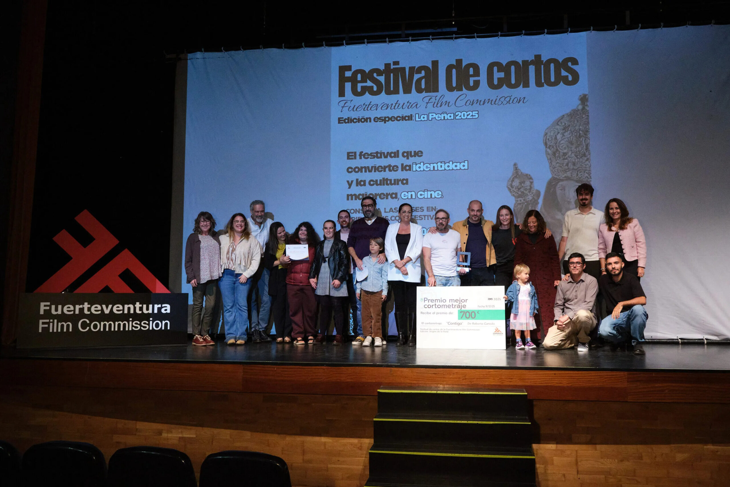 El premio al mejor cortometraje, dotado con 700 euros, fue concedido a Roberto Canedo Balboa por su obra Contigo, una pieza audiovisual de carácter íntimo y emotivo protagonizada por una abuela y su nieta, que reconstruyen su vínculo y su historia común a través de los recuerdos. El galardón fue entregado por la presidenta del Cabildo de Fuerteventura, Lola García, y la consejera de Fuerteventura Film Commission, Nereida Calero.