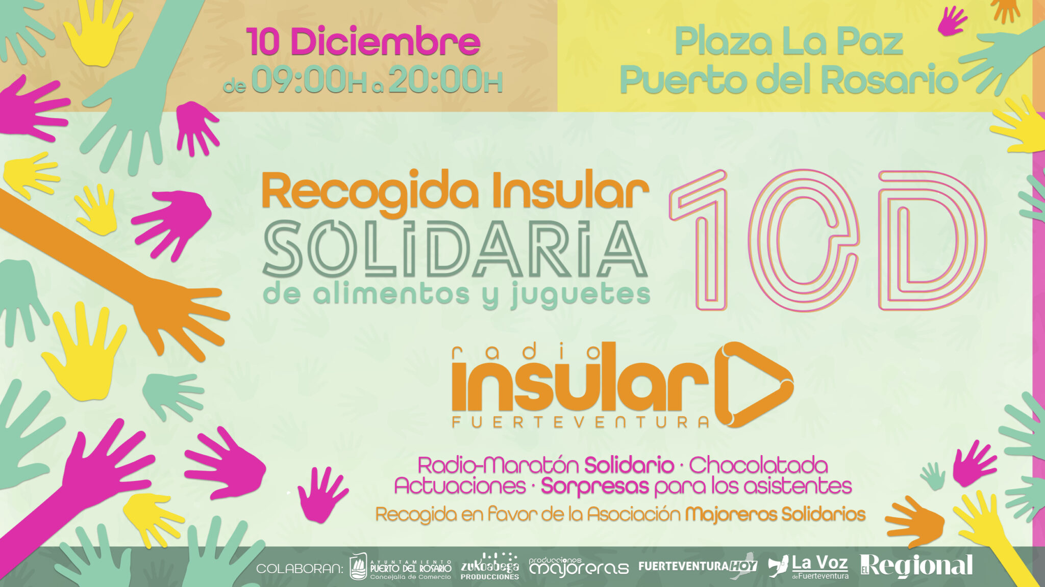 Radio Insular (95.4, 96.7 y 102.0 FM) se suma a esta recogida solidaria con un maratón radiofónico conducido por todos los locutores y locutoras de la emisora de 09:00 a 20:00 horas, en la Plaza de La Paz de Puerto del Rosario, donde se realizará un seguimiento especial de la recogida.