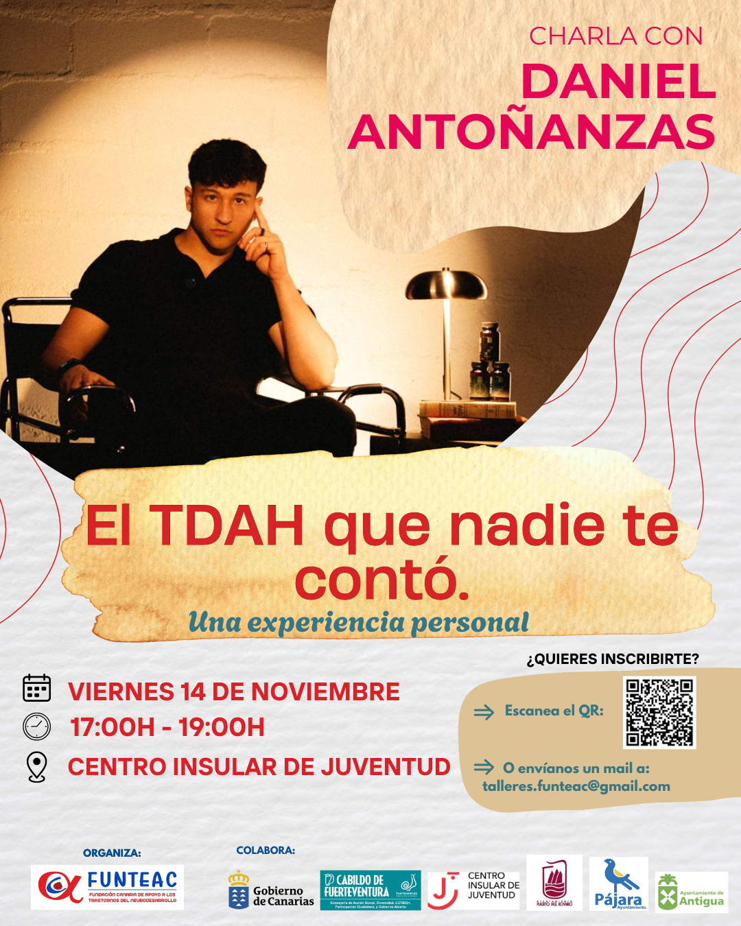 El evento, protagonizado por Daniel Antoñanzas, se celebrará el viernes 14 de noviembre, de 17:00 a 19:00 horas, en el Centro Insular de Juventud de Fuerteventura. La actividad está dirigida a familias, jóvenes y profesionales, con el objetivo de fomentar la comprensión, la empatía y el acompañamiento efectivo hacia las personas que conviven con este diagnóstico.