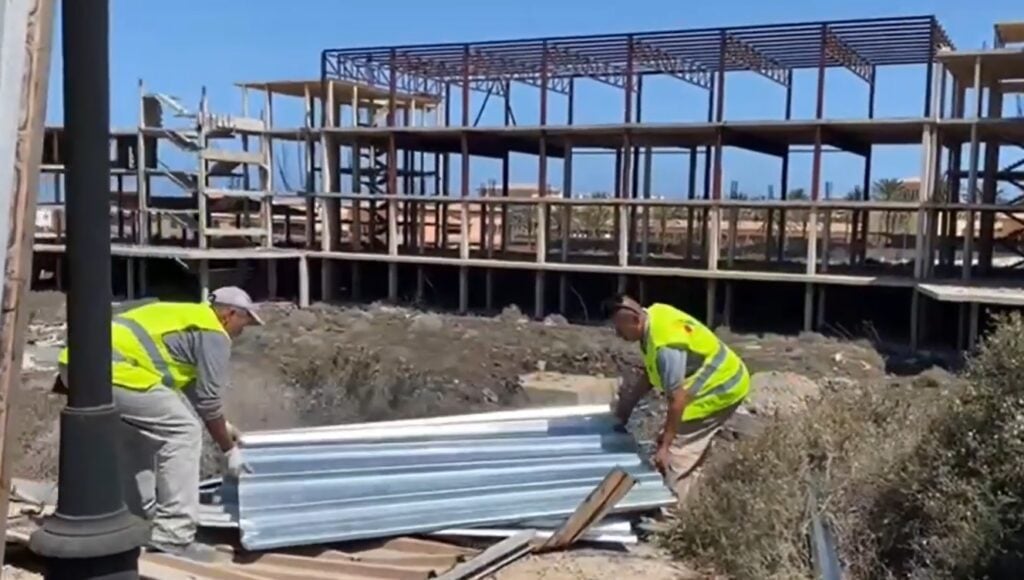 Tras más de 20 años de espera, la empresa propietaria de Las Mirandas ha iniciado los trabajos previos de limpieza y desescombro, así como el cambio de la valla perimetral con el fin de proceder al inicio de las obras que pondrán fin, en palabras de la alcaldesa Pilar González, a “una pesadilla visual y una auténtica aberración que durante dos décadas estropeó la imagen de Corralejo.”
