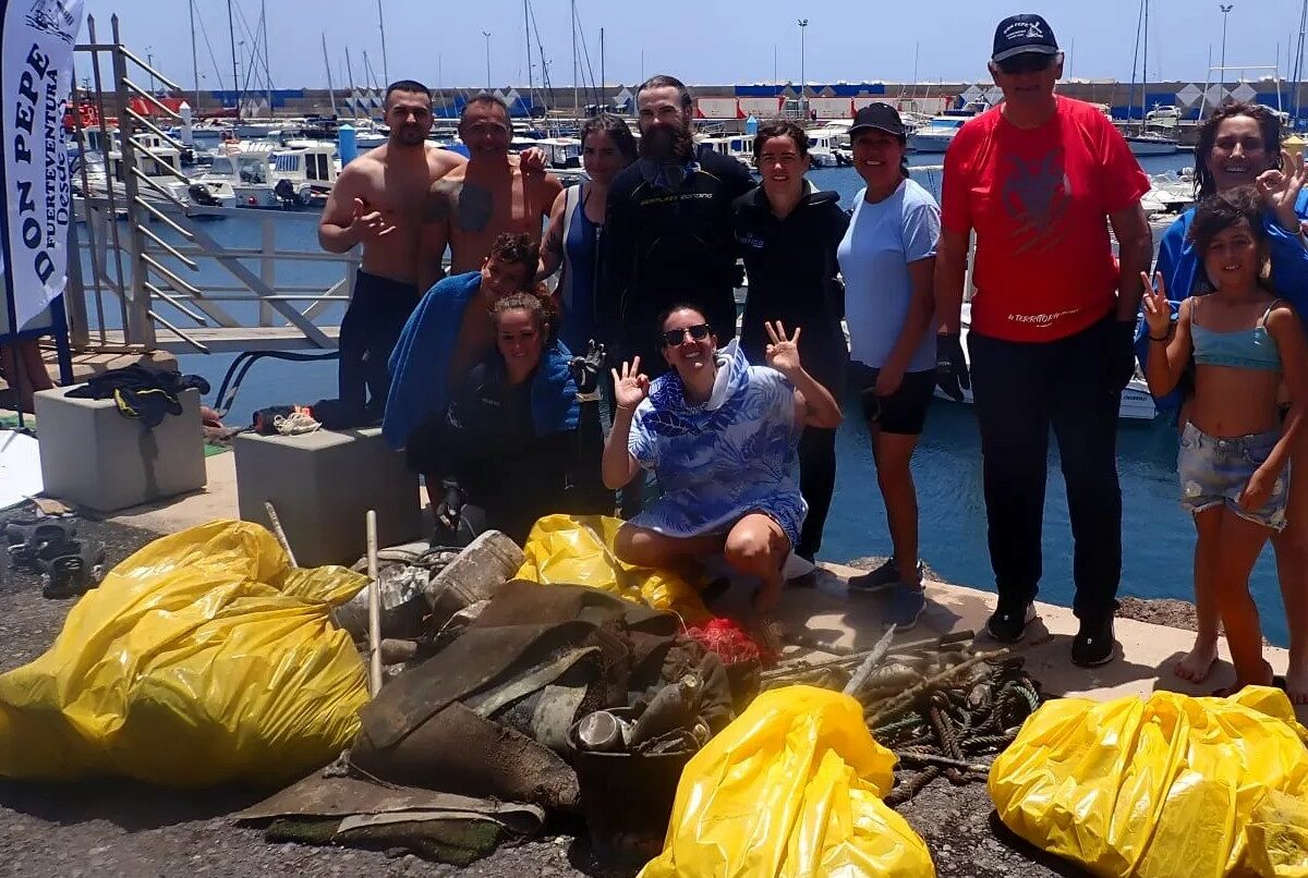 Su espíritu de colaboración y su amor por el medio ambiente les ha llevado el pasado sábado a sumergirse en el muelle de Gran Tarajal y realizar una limpieza del fondo marino.