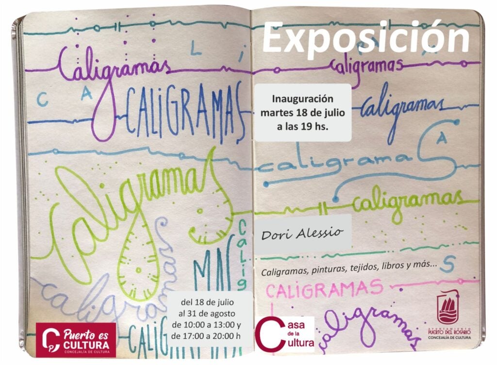Este martes, 18 de julio a las 19:00 horas, la Casa de la Cultura de Puerto del Rosario acoge la inauguración de la exposición ‘Caligramas’ de Dori Alessio.