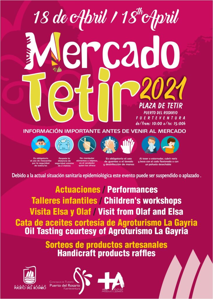 “Un plan, sin duda, donde pasar una jornada diferente se convierte en una nueva oportunidad para conocer y degustar los productos artesanales de la isla de Fuerteventura, así como incentivar al consumo local tan importante en estos momentos para aquellos sectores más vulnerables, y disfrutar, al mismo tiempo, de una propuesta de ocio, bajo cumplimiento en todo momento de las medidas sanitarias establecidas, con música de ambiente en un entorno rural, histórico y emblemático como es la Vega de Tetir. Este es un evento que se agenda con la pretensión de revitalizar y dinamizar esta zona comercial, así como potenciar un espacio de encuentro y de compras para la población, sobre todo, en unos momentos donde es fundamental apoyar, ayudar y favorecer a aquellos sectores locales que se han visto más perjudicados por la crisis sanitaria derivada de la pandemia epidemiológica”, detallan.