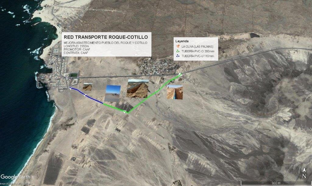 El Consorcio de Abastecimiento de Aguas a Fuerteventura (CAAF) instala una nueva red de transporte de agua para mejorar el suministro en las zonas de El Cotillo y El Roque. Se trata de una red completamente nueva, de 2.150 metros de longitud, que parte desde El Roque y discurre por caminos municipales hasta llegar a El Cotillo.