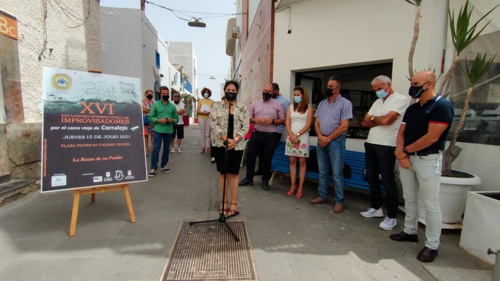 Fuerteventura podrá disfrutar de las rimas y versos del XVI Encuentro Internacional de Improvisadores por el Casco Viejo de Corralejo, que se celebrará este jueves, día 15 de julio, en la Plaza Patricio Calero y se presentó esta mañana, martes, 13 de julio, en el Muellito, con asistencia de vecinas y vecinos del lugar. Dieciséis improvisadores de Fuerteventura, Tenerife, La Palma y Gran Canaria participarán en el evento, que organiza la Asociación de Verseadores Canarios Ocho Sílabas, con el apoyo, un año más, del Cabildo de Fuerteventura, el Gobierno de Canarias y el Ayuntamiento de La Oliva.