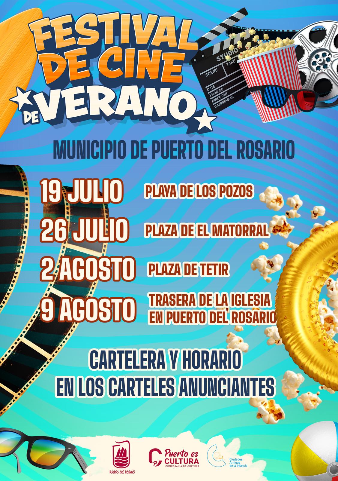 Un año más, el Ayuntamiento de Puerto del Rosario, a través de su Concejalía de Cultura, pone en marcha el Festival de Cine de Verano, una iniciativa que se consolida como una de las propuestas culturales más esperadas del periodo estival. Bajo el cielo de Fuerteventura, en plazas y espacios públicos del municipio, vecinos y visitantes podrán disfrutar gratuitamente de cine al aire libre pensado para todos los públicos.