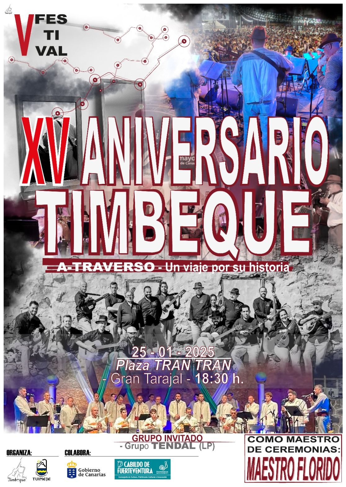 El próximo sábado 25 de enero, la Plaza Tran Tran de Gran Tarajal será el escenario de la quinta edición del Festival A-Traverso, un evento que rinde homenaje a la música y la tradición canaria, y que este año tendrá un significado especial al coincidir con el 15.º aniversario de la agrupación anfitriona, Timbeque.