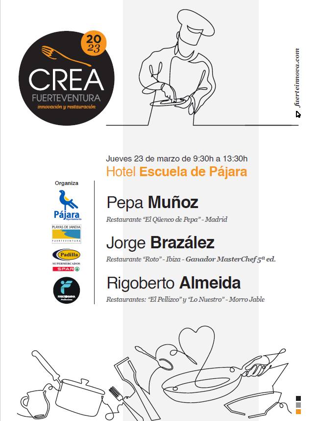 El Ayuntamiento de Pájara promoverá la gastronomía local, la innovación y la restauración del municipio con la organización de las jornadas Crea Fuerteventura 2023, organizadas por la Concejalía de Turismo, en la sede del Hotel Escuela de Pájara, el próximo 23 de marzo, de 9:30 a 13:30 horas.