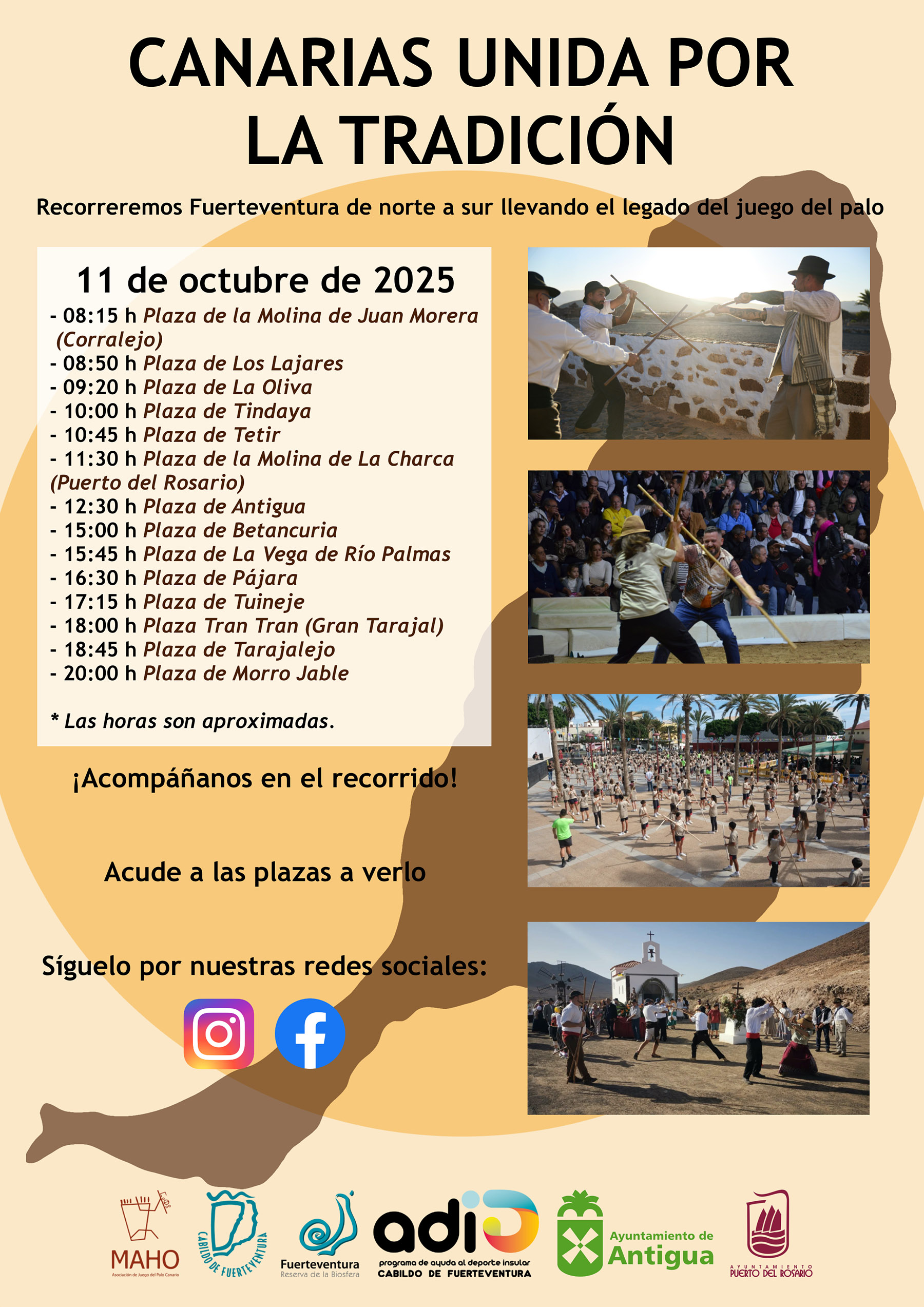 La Asociación Cultural MAHO, reconocida por lograr el Récord Guinness el pasado 15 de noviembre de 2024, vuelve a poner en valor las raíces y la identidad isleña con una nueva iniciativa de alcance regional: “Canarias Unida por la Tradición”, una carrera de relevos en torno al Juego del Palo Canario que recorrerá 14 localidades majoreras en un solo día, el sábado 11 de octubre.