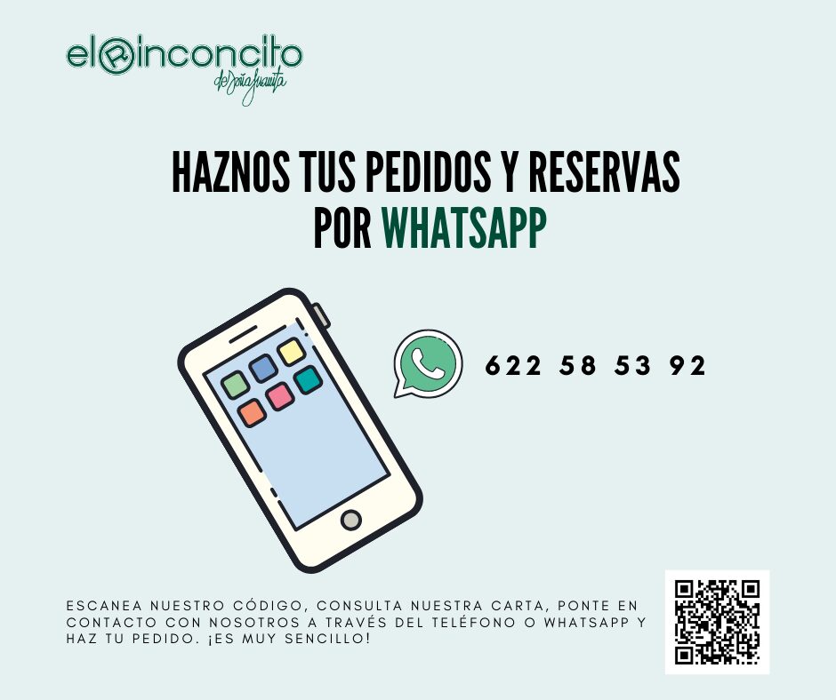 Puedes realizar tu reserva de mesa o pedido a domicilio a través del número de teléfono 622 58 53 92.