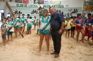 El concejal de Deportes de Antigua, Samuel Torres Mesa, también presente en este Encuentro de las Escuelas infantiles de todos los municipios y clubs de lucha en la isla, destacaba especialmente, la alta participación de jóvenes luchadoras sobre la arena.