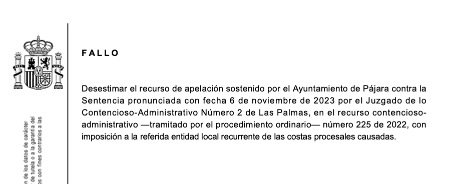 La sentencia desestima así los argumentos del Ayuntamiento de Pájara, que intentaba justificar la legalidad de su actuación con base en una interpretación extensiva de la Ley de Municipios de Canarias. La decisión confirma que el pase a la condición de concejal no adscrito solo es aplicable cuando se abandona un grupo político constituido, algo que no ocurrió en este caso.