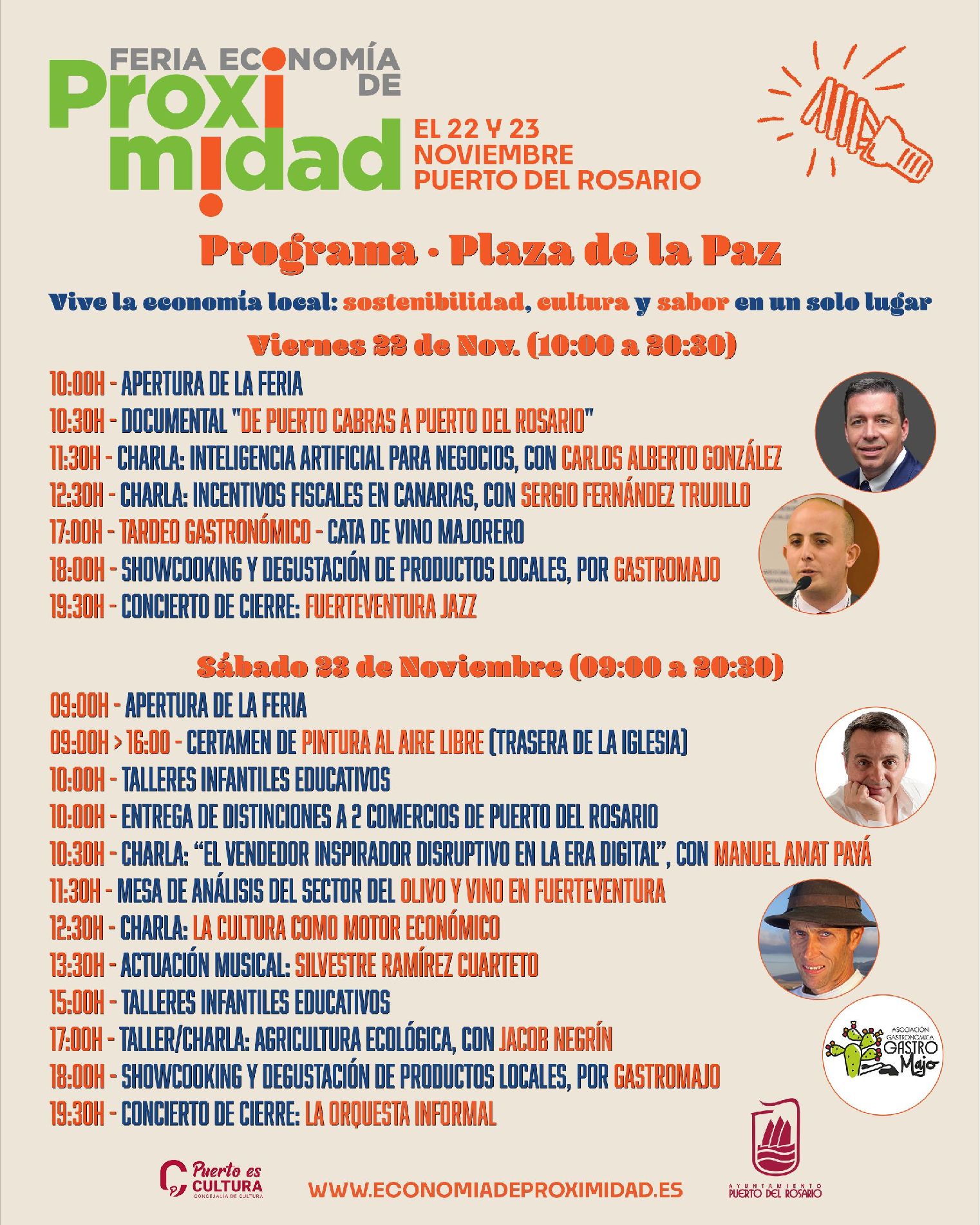 El Ayuntamiento de Puerto del Rosario, a través de la Concejalía de Promoción Económica, organiza los días 22 y 23 de noviembre la Feria de Economía de Proximidad, que se celebrará en la Plaza de la Paz con una programación diversa y gratuita para toda la ciudadanía.