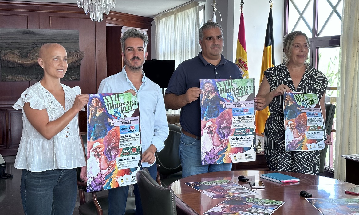 La Concejalía de Cultura del Ayuntamiento de La Oliva presentó ayer, lunes 31 de julio, la decimoséptima edición del Festival Internacional de Blues y Jazz que se llevará a cabo los días 19, 20 y 21 de octubre en la Avenida Nuestra Señora del Carmen, en Corralejo. Este evento anual ha ganado relevancia en el calendario de festivales y contará con talento local e internacional.