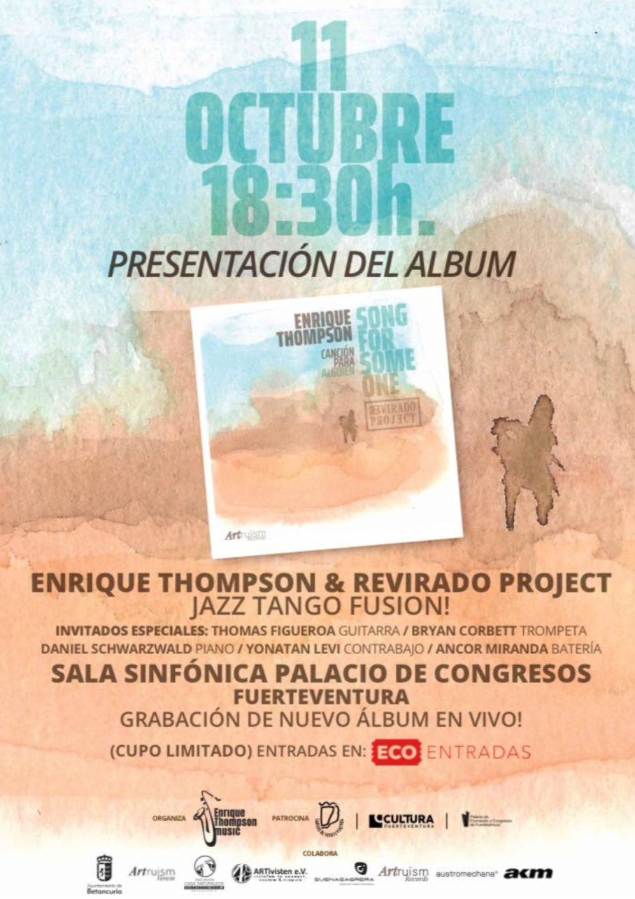 El próximo miércoles 11 de octubre a las 18:30 h, la Sala Sinfónica del Palacio de Congresos de Fuerteventura será el escenario donde Enrique Thompson & Revirado Project lanzarán su nuevo álbum, «Song for Someone». Este trabajo discográfico representa una evolución en la trayectoria del saxofonista y compositor argentino, quien desde 2014 ha explorado la fusión del tango y la música folklórica argentina con el jazz y otras corrientes musicales.