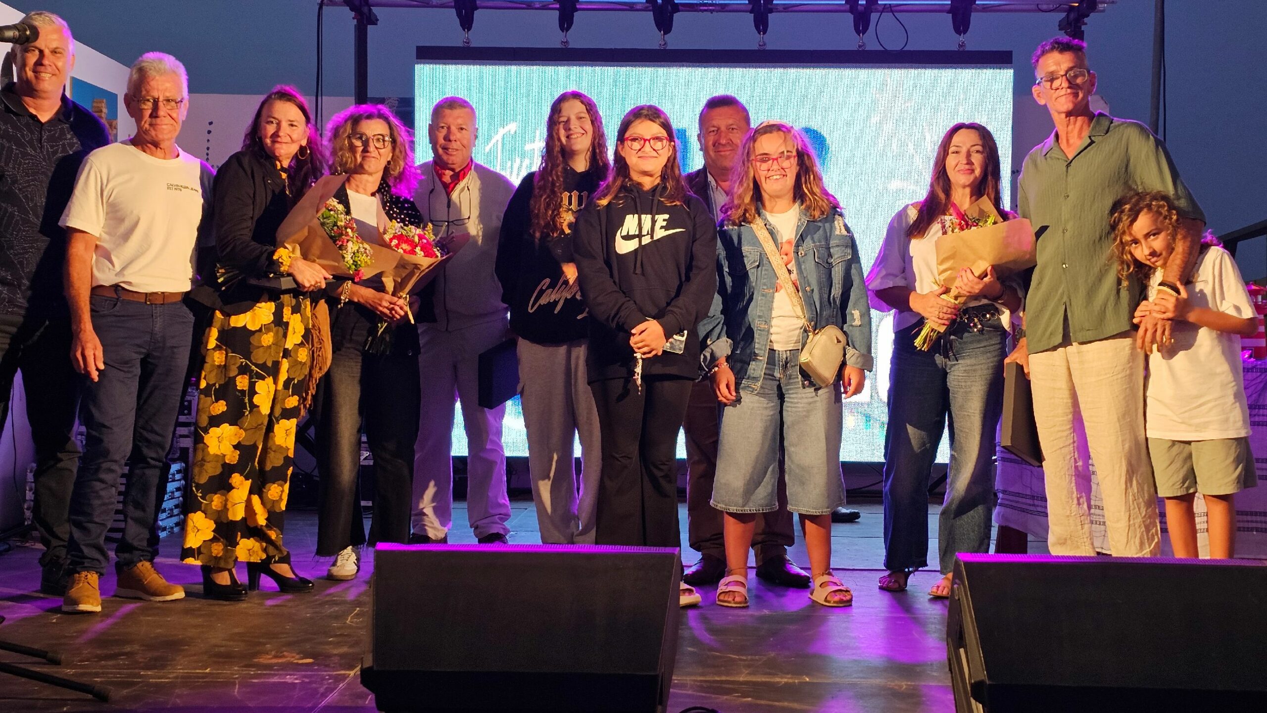 Los pregoneros recordaron también cómo, en los primeros años, la música de la verbena no venía de orquestas ni equipos de sonido, sino de un casete a todo volumen en un coche con las ventanas abiertas. “Por familia, se ponían cien pesetas para el asadero popular”, añadieron con emoción, en un discurso que fue interrumpido en varias ocasiones por los aplausos del público, especialmente cuando la emoción les impedía continuar.