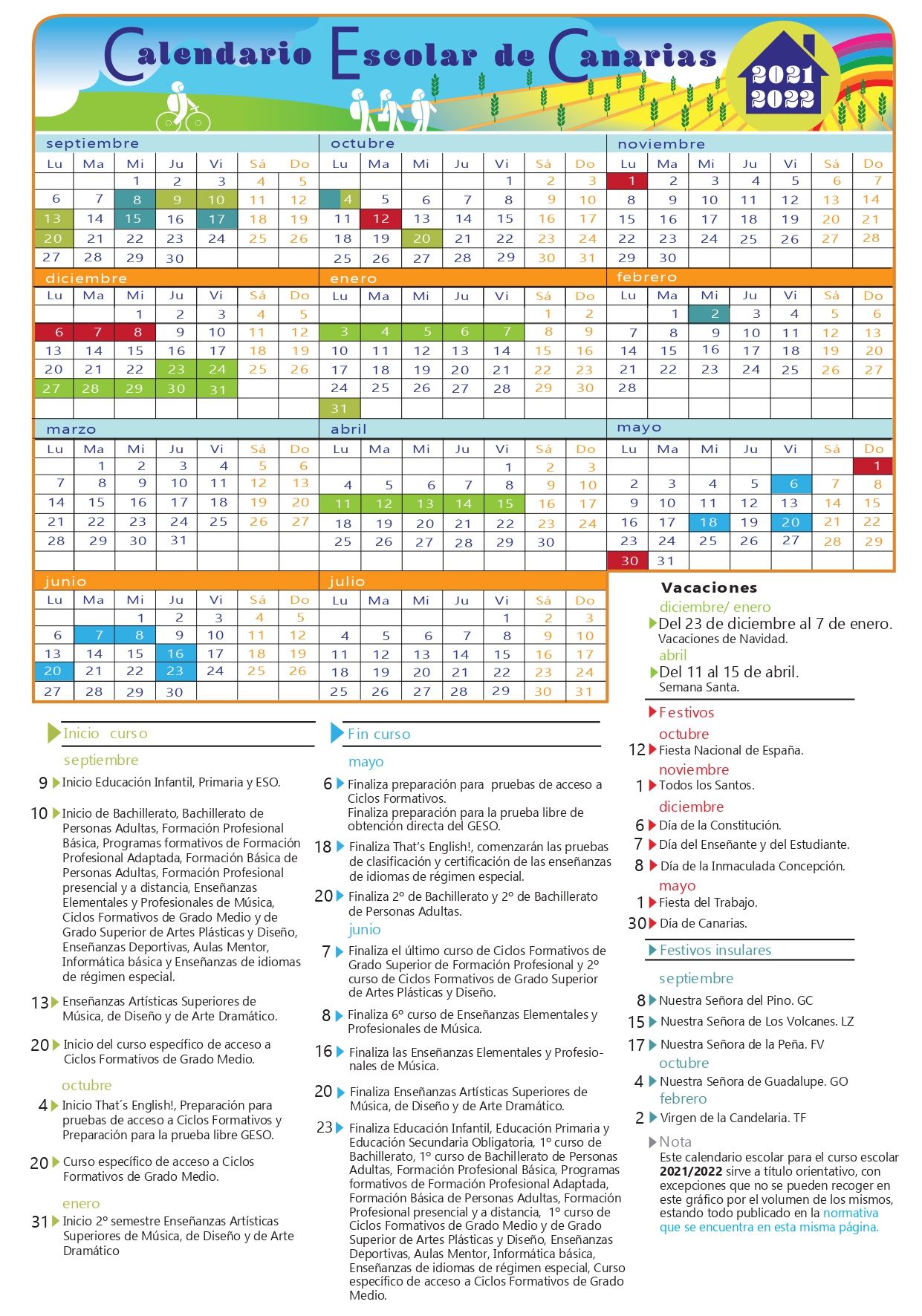El Gobierno de Canarias hace público el calendario escolar e instrucciones de comienzo y finalización del curso 2021-2022