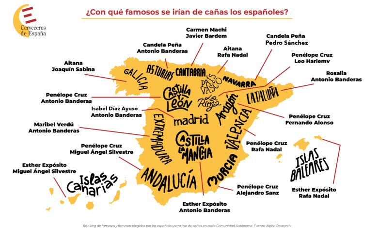 Pero no todos los españoles elegirían a las mismas celebridades: Cerveceros de España también desvela hoy a qué personaje popular elegirían los españoles de cada comunidad autónoma: