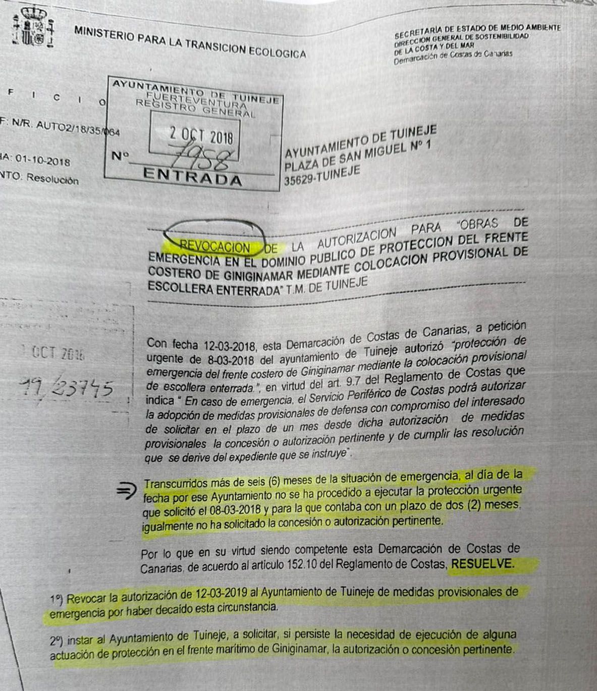 Sin autorización, no se podía ejecutar la subvención a pesar de las cuatro prórrogas dadas por el Gobierno de Canarias a la espera de que la corporación pudiera lograr un nuevo permiso por parte de Costas.