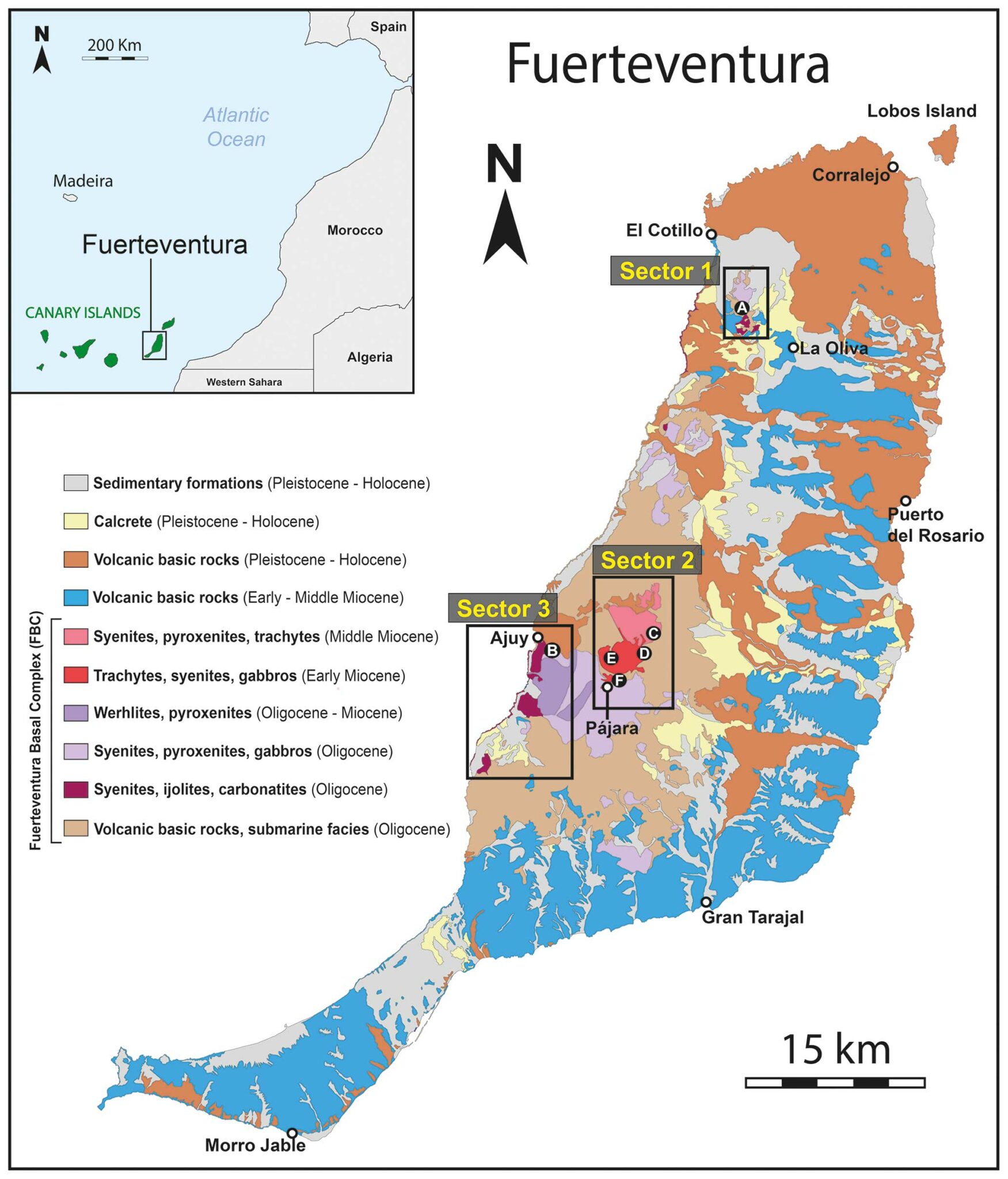 El estudio realizado por el equipo de investigación del proyecto MAGEC-REEsearch ha identificado tres sectores principales en la región occidental de Fuerteventura donde se han encontrado concentraciones significativas de tierras raras:
