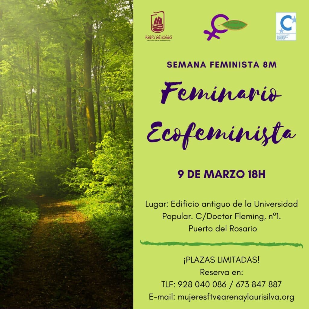 Desde el Centro nos complace invitarle a asistir al Feminario Ecofeminista que se celebrará hoy, día 9 de marzo, a las 18:00 horas, en la Antigua Universidad Popular (Calle Dr. Fleming, nº 1), dentro del marco de la Semana Feminista programada para la isla de Fuerteventura.