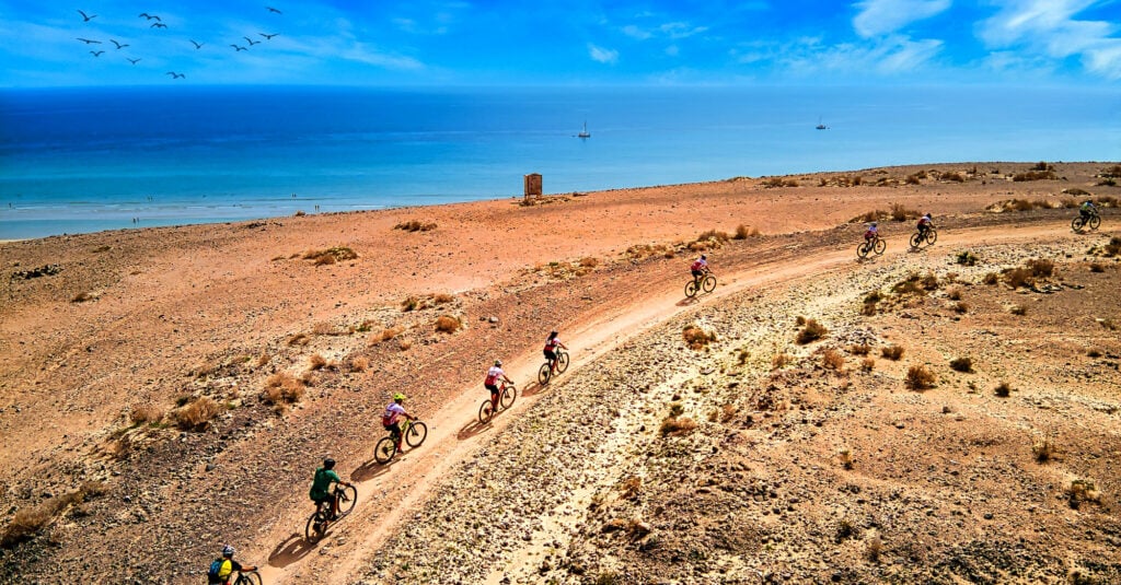 FudeNaS, la mejor prueba ciclista en bicicleta de montaña (BTT) de Canarias, celebró su decimoséptima edición, reafirmando su prestigio y consolidación no solo a nivel insular, sino también nacional e internacional. El recorrido atraviesa de norte a sur la isla de Fuerteventura, ofreciendo a los participantes una experiencia única al pedalear a través de la árida y sorprendente belleza del paisaje majorero. La prueba comienza en Corralejo, en el norte de la isla, y culmina en Morro Jable, en el sur, completando un 90% de su itinerario por caminos, pistas y sendas que permiten apreciar la esencia de Fuerteventura.