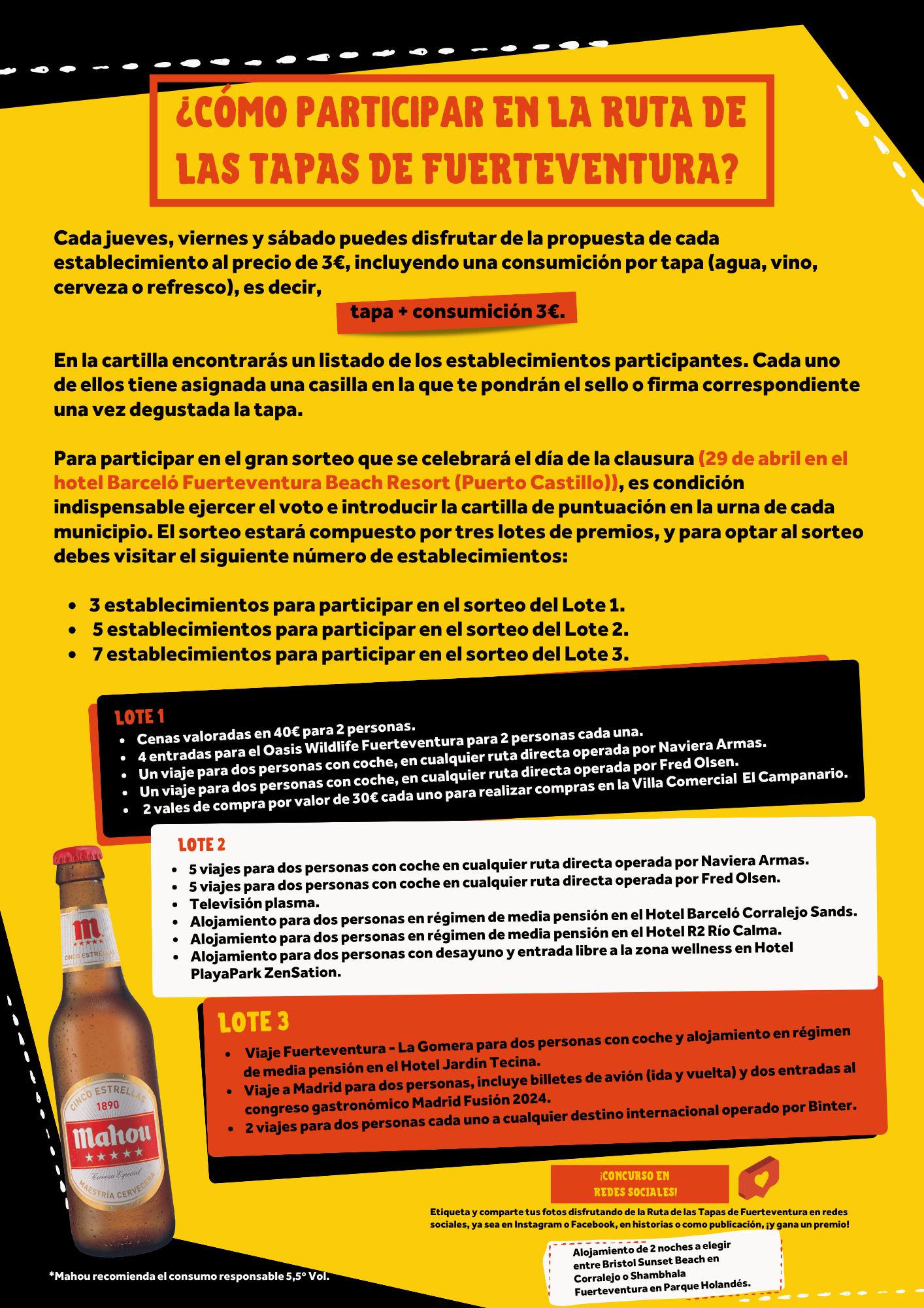 Todos ellos tendrán sendos reconocimientos y además el estableciendo ganador como la mejor tapa de la isla ganará un premio económico de 1000 euros.
